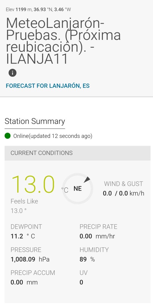 Nuestra estación meteorológica de Haza Velica en la Chaparra de Lanjarón, acaba de ser agregada a la red de estaciones de la asociación meteorológica del sureste (AMETSE). Aquí os dejamos el enlace a la estación en su página web https://redmeteo.ametse.es/estacion.php?eid=ILANJA11